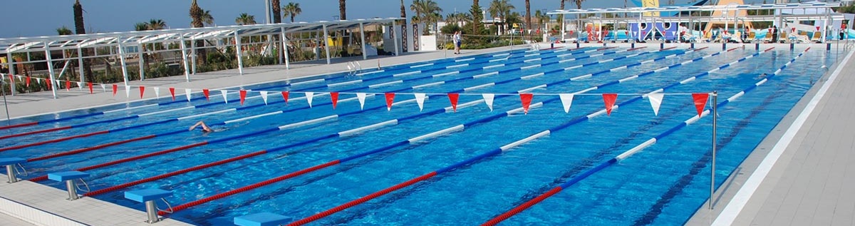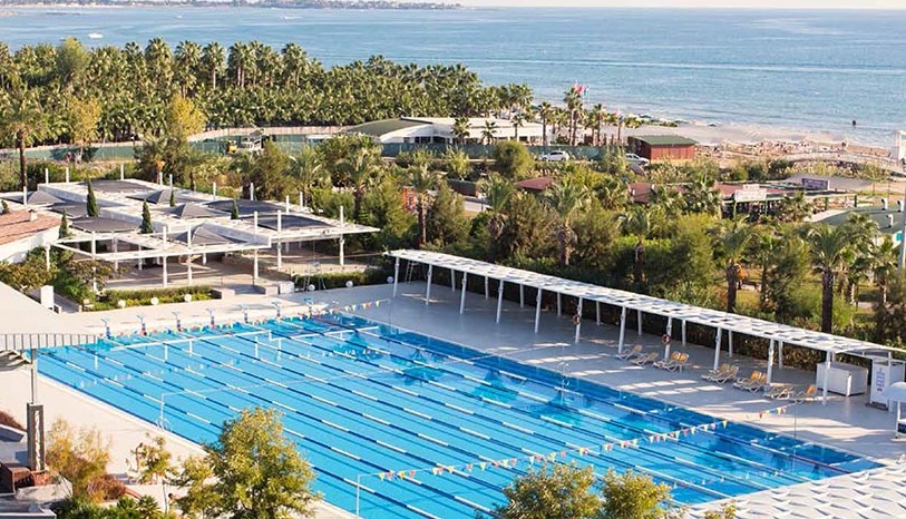 SWIMMING TRAINING FACILITIES There is swimming pool on site and teams will use the outdoor 10 lane Olympic sized (50X25 m) heated pool for their training camps the pool has starting blocks, lane ropes and back stokes flags. There is a renewed healthy club on site with all the latest fitness equipment as well as s spa area offering massage and beauty services