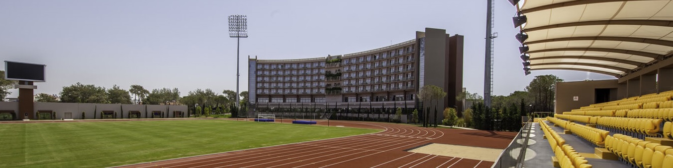 GLORIA SPORT ARENA GSC is situated in Belek-Antalya and its 30 minutes away from Antalya International Airport. GSC Hotel offers 100 modern designed rooms suitable for the athletes and their needs. Dining & Bars; GSC restaurant, lobby and lounge are with sports bar have a beatiful terrace view of the stadium. International and national cusine will be served. Rooms *100 rooms with impressive stadium view *82 standard rooms: 30 m2 *10 suite rooms: 63 m2 *8 disabled rooms; 30 m2